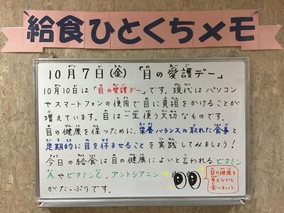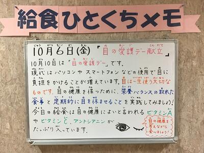 今日から学校給食週間が始まります。全国的には24日からなのですが、本校では休みの学年のない日を選んで、学校給食週間としました。1日目の今日は、「からすのてんぷらやさん」(かこさとし著 偕成社)から天ぷらを取り入れました。給食中に教室で本の紹介をすると、みんな興味津々で見ていました。