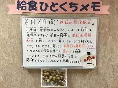 【6/2(金) 運動会応援献立・高等部農業班が育てた玉ねぎを使用】
