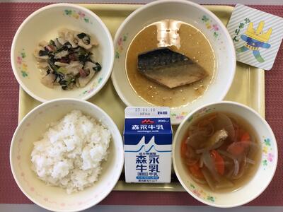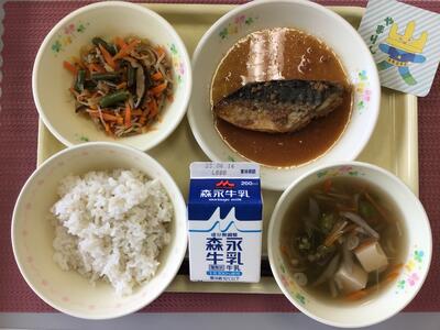 ごはん,牛乳,さばのみそ煮,のり酢和え,けんちん汁