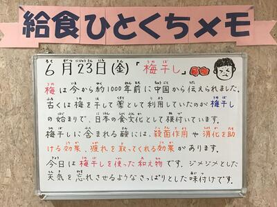 この給食ブログでは,児童生徒のみなさんに提供している給食や給食一口メモ(学校給食を活用し,食に対する正しい知識と望ましい食習慣を身につけることができるよう作成しているもの)を紹介していきます。本校の給食や食に関する指導の取り組みが家族団らんの話題や食育推進につながることを目指していますので,ぜひご覧ください。