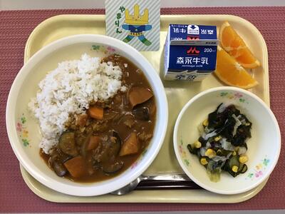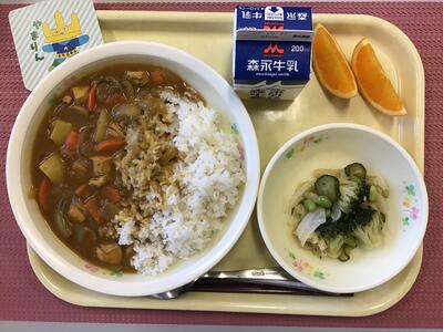 ポークカレー(麦ごはん),牛乳,ブロッコリーサラダ,清見オレンジ
