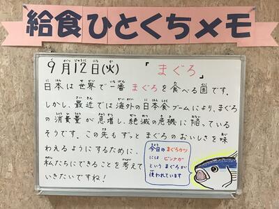 学校給食週間3日目の今日は、「やきざかなののろい」(塚本やすし著 ポプラ社の絵本)から、焼き魚(ほっけの塩焼き)を取り入れました。「のろい」という言葉にびっくりする子ども達でしたが、本の紹介をすると、みんなニコニコおいしそうに焼き魚を食べていました。