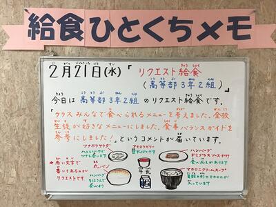 【2/21(水) リクエスト給食(高等部3年2組)】