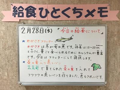 【2/28(水) 旬の食材:わかさぎ、地場産物:桑の葉】