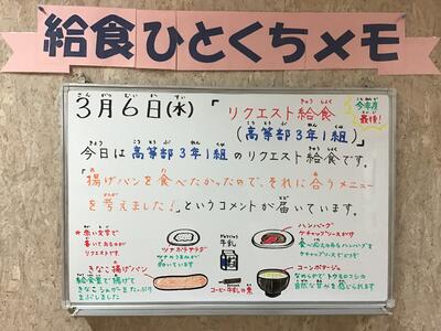 【3/6(水) リクエスト給食(高等部3年1組)】