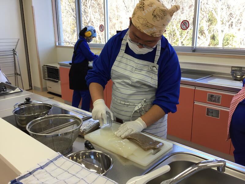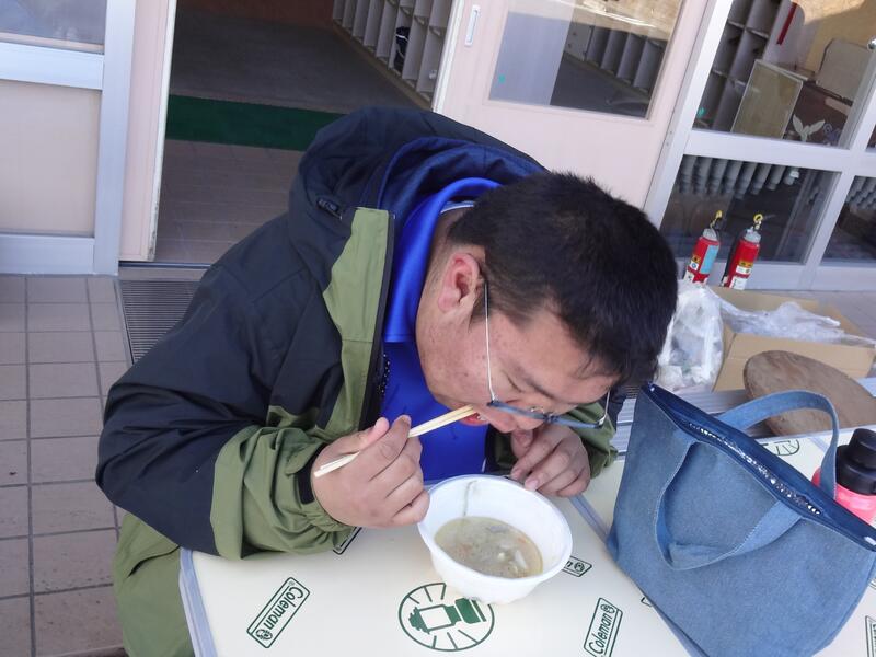 生活単元学習の「栽培~野菜を育てよう~」の単元で,種から育てたにんじんや大根,里芋を収穫して,1月恒例の豚汁作りをしました。自分たちで育てた野菜を自分たちで調理したことで,よりおいしく感じ,寒さも何のその!フーフー冷ましながら温かい豚汁をおかわりして大満足でした。