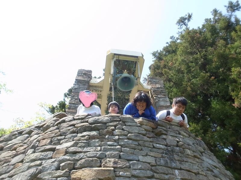 あいにくの梅雨空の中,深山少年の森への登山を実施し,全員が登頂に成功しました。普段なら,太平洋に浮かぶ船まで見える景色は雨で曇っていましたが,鐘を鳴らしているみんなの表情はピカピカに晴れて,どんな景色よりステキに輝いていました。