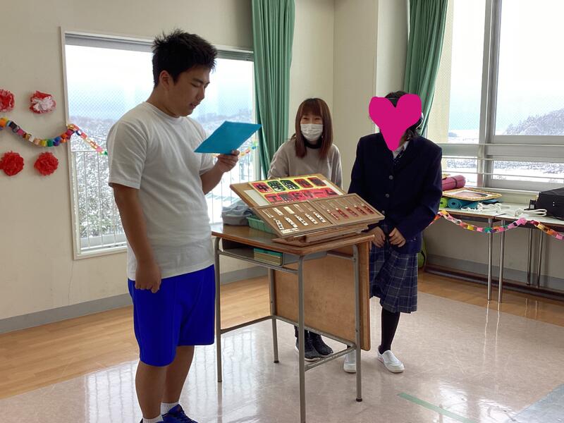 1・2年生対3年生で、かるたをしました。