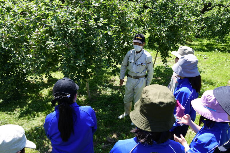 6月11日(火)、いつもお世話になっている「阿部りんご園」さんで「摘果」の作業を行いました。1年間、りんごの生長に関わる体験をさせていただきます。