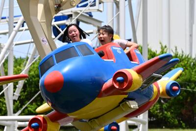 ベニーランドでは、観覧車の前で集合写真撮影後に各アトラクションを楽しみました!