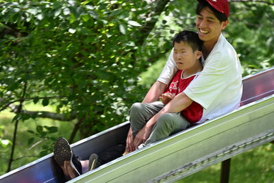 チェックアウトした後、大きなローラースライダーで遊びました。