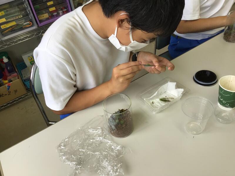 7月14日(水)に1年生,15日(木)に2・3年生が亘理高等学校普通科園芸コースの生徒の皆さんと交流会を行いました。亘理高校の農場で,夏野菜の収穫や菊の苗植え,観葉植物の寄せ植えなどの体験をさせていただきました。初めは,緊張しながら自己紹介をしていましたが,少しずつ打ち解けながら活動することができました。