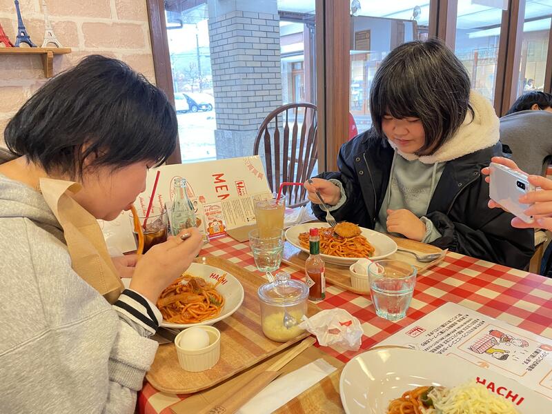 昼食は宮城県美術館内にあるカフェモーツァルトでパスタやカレーを食べました。おいしい料理に満足気な表情が見られ,雨の移動で疲れた身体をリフレッシュできました。