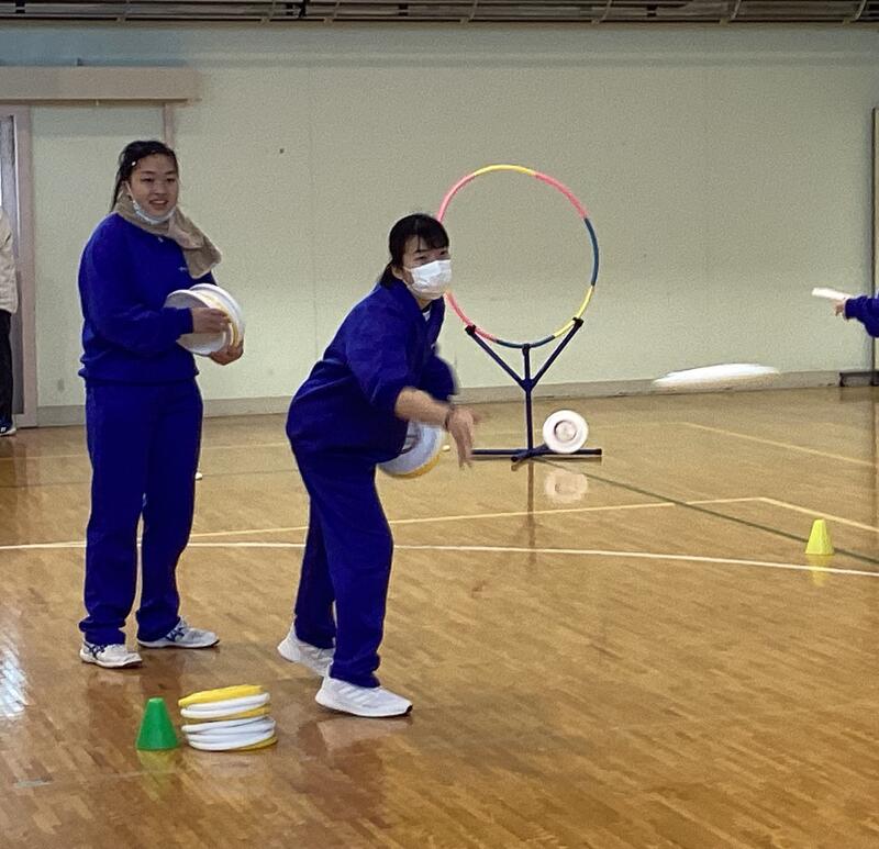 レクリエーション(フライングディスク)~3チームに分かれて得点を競いました~