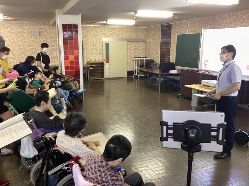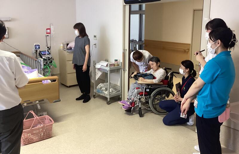 1病棟の病室では先輩や先生、スタッフみんなで集会に参加しました。