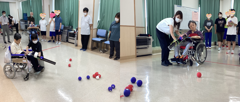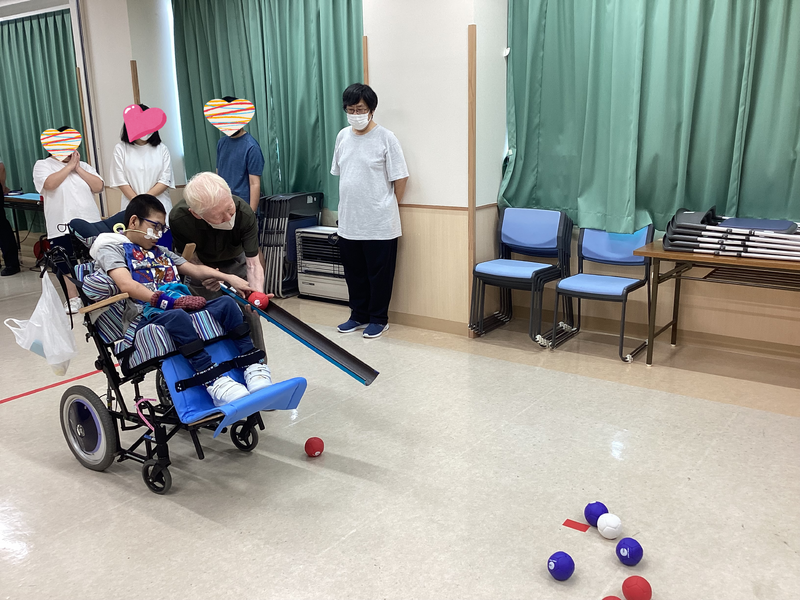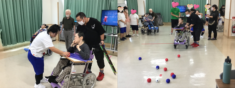 高等部ではひまわり教室とあすなろ教室合同で、集会「にこにこタイム」が行われました。今回はボッチャ大会!4チームそれぞれ熱い声援が飛び交っていました。