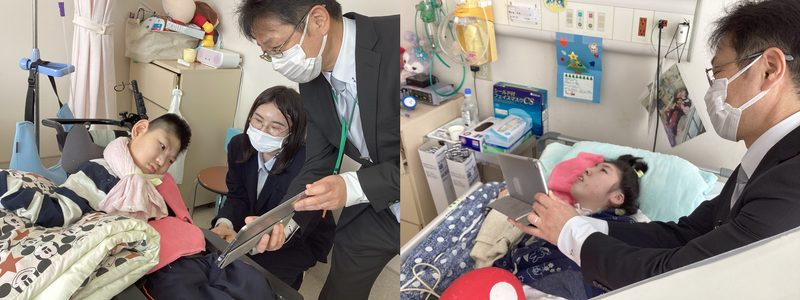 2病棟では初めて児童生徒が一緒にオンラインで参加しました。「よろしくね!」