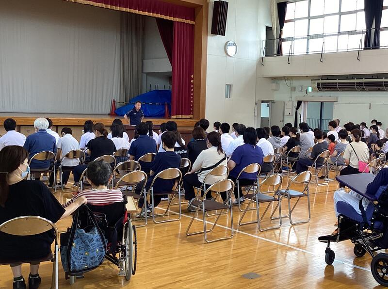 7月2日(火)に不審者侵入対策避難訓練を行いました。校舎1階に見慣れない男性がいて、話を聞こうとしたが興奮して暴れ出し、さすまたを使って取り押さえたという想定で行いました。児童生徒は校内放送や担任の先生の指示をよく聞き、教室内で静かに避難することができました。