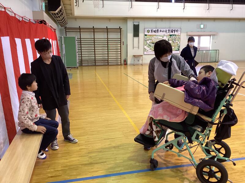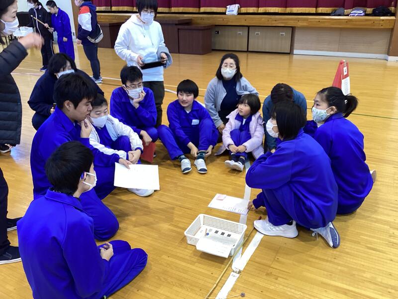 2月7日(水)に第3回やまりん集会を行いました。小学部から高等部までが縦割で4つのグループに分かれ、魚釣りゲームを行いました。まず、グループごとに順番決めと作戦会議を行いました。ゲームがスタートすると、うまく魚が釣れない小学部の児童に対して、手を引いたり一緒に釣りを手伝う中学部・高等部の姿が見られました。