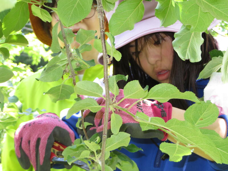 総合的な学習の時間「りんごの1年」-摘果-