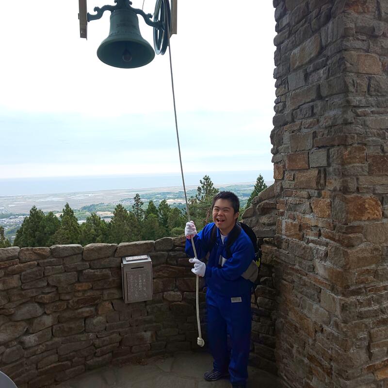 あいにくの梅雨空の中,深山少年の森への登山を実施し,全員が登頂に成功しました。普段なら,太平洋に浮かぶ船まで見える景色は雨で曇っていましたが,鐘を鳴らしているみんなの表情はピカピカに晴れて,どんな景色よりステキに輝いていました。