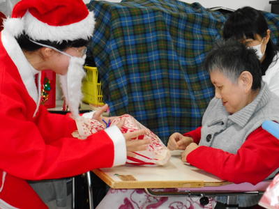 12月17日に校舎3階プレイルームにてクリスマス会を行いました。この日のために,生徒たちは会場の装飾を作ったり,サンタクロースへの手紙を書くなどして準備に取り組みました。当日はゲームや歌などで盛り上がっていたところにサンタクロースが登場!一人一人にプレゼントが渡され,みんなとても嬉しそうでした。メリークリスマス!