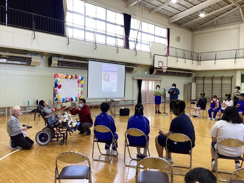 ひまわり教室・あすなろ教室の高等部が体育館に集い、新入生との「対面式」を行いました。みんなで自己紹介をして、親睦を深めることができました。病棟からオンラインで参加の生徒は、画面から伝わる楽しい雰囲気に表情が明るくなりました。