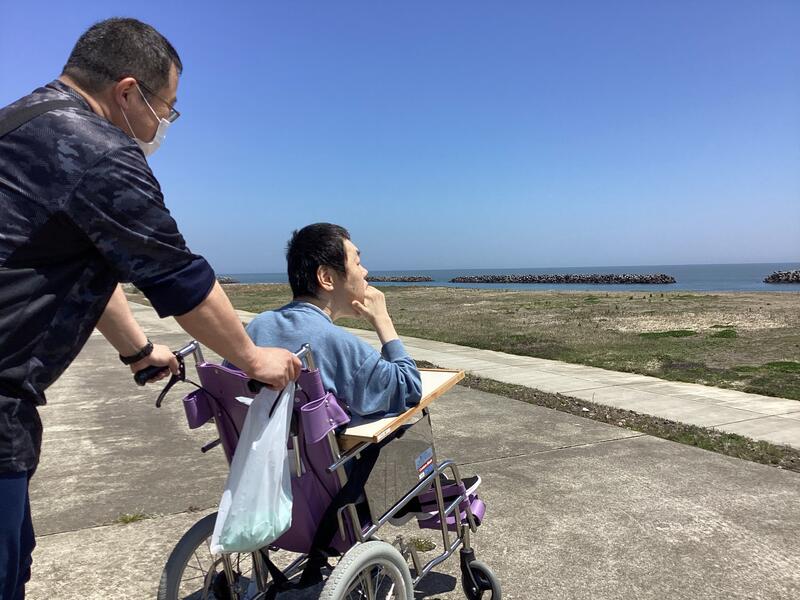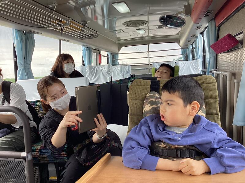 あすなろ教室の校外学習で鳥の海公園へ行ってきました。天気にも恵まれ、久しぶりのバスにみんなニコニコです。目の前に広がる海原や波の音、潮の香り、かもめの鳴き声など校外ならではの学習となりました。