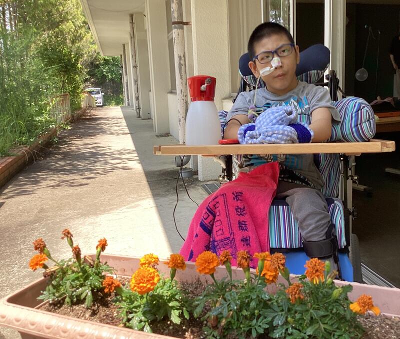 みんなで植えたマリーゴールドにお水をあげるのが僕の日課です。