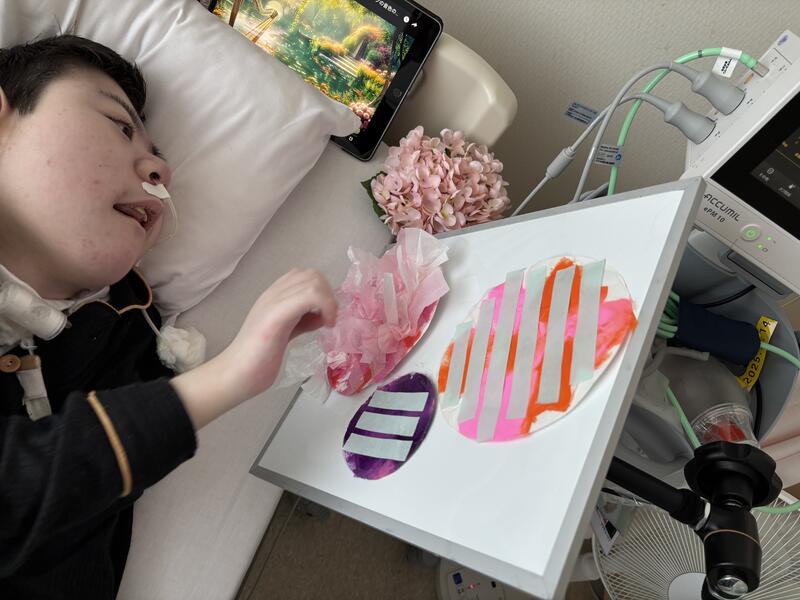 冬休み明けの集会には校長先生が来て話をしてくださいました。病棟のベッドサイドでもそれぞれにお正月の学習をしています。