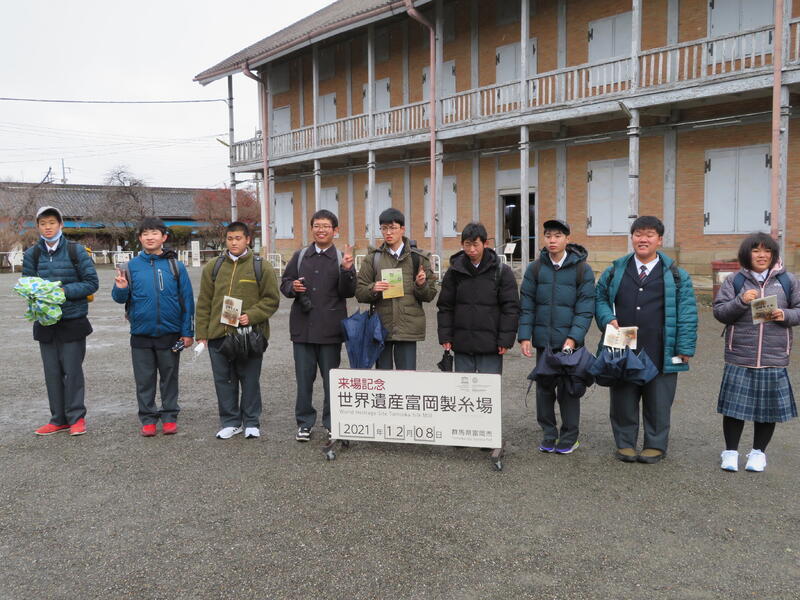 富岡製糸場に着いた頃には雨が上がり,生徒のボルテージも段々と上がってきました。