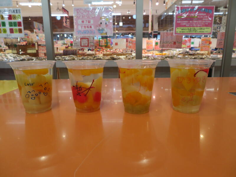 こんにゃくパークでは,自分たちが選んだフルーツをこんにゃくゼリーで固めてデザートを作りました。作ったゼリーはその日のお風呂上がりにみんなで食べました。ゼリーのほどよい甘さがフルーツを引き立ててくれる最高においしいゼリーでした。