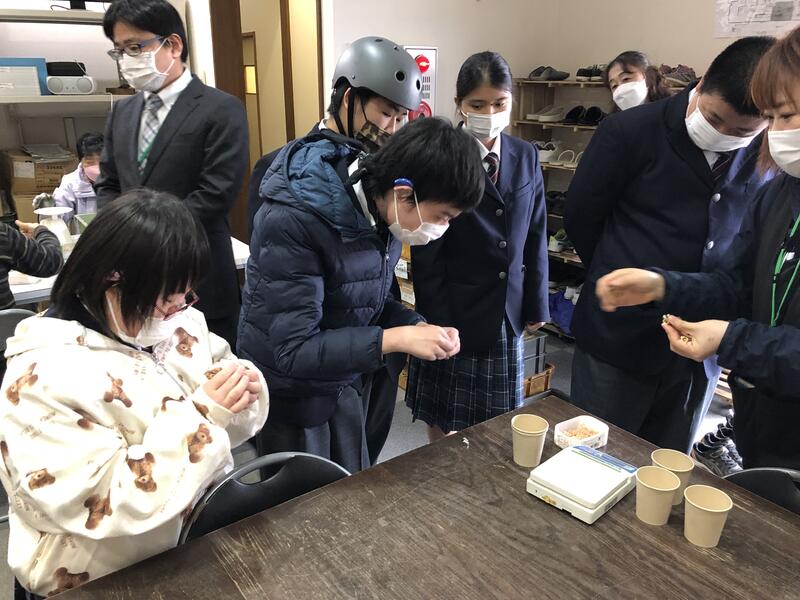 卒業生の話を聞いた後は,仕事の様子の見学や体験をさせていただきました。