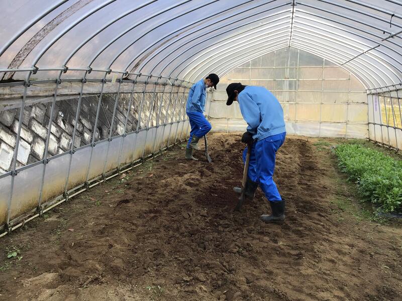 農業班① 春からの野菜作りに向け,土壌改良を行っています。