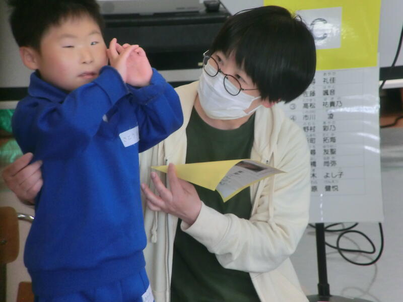 角田支援学校のものまねクイズにも積極的に手を挙げて答えるなど,3回目で緊張がほぐれてとてもよい活動になりました。