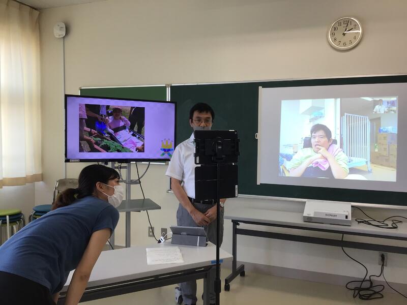 あすなろ教室は病棟とオンライン中継して実施しました。児童生徒の元気な様子をカメラ越しに見ることができました。