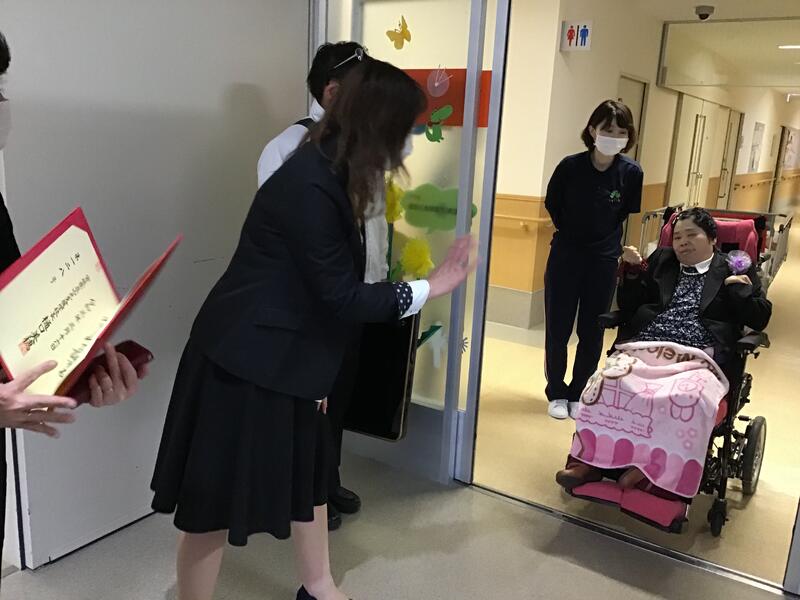 【卒業証書授与式】病棟での卒業証書授与式。画面越しではなく,対面での面会はご家族も数ヶ月ぶりでした。