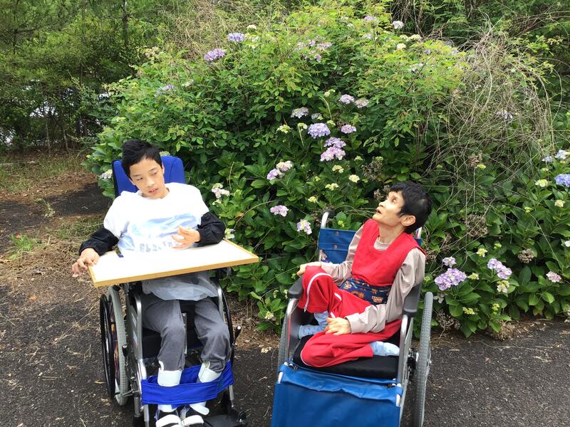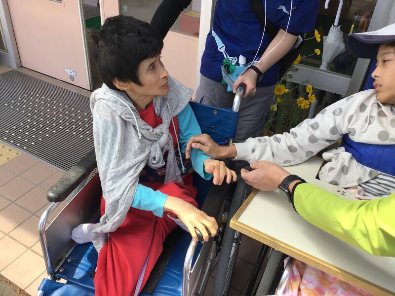 久しぶりの外気浴。ひまわり教室のお友達とも会えました。