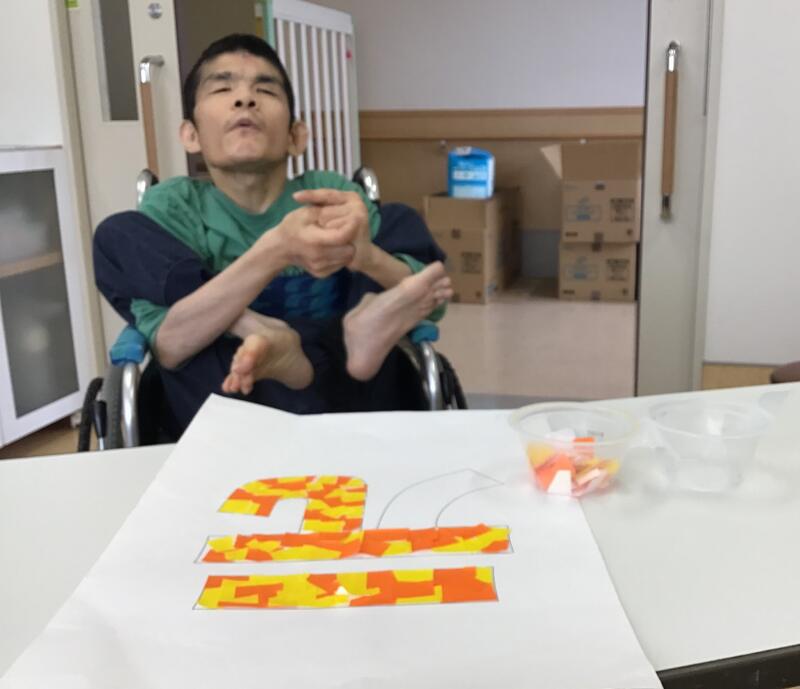 11月から午後も病棟内で授業をすることが可能になり,少ない時間ですが毎日対面で授業を行うことができるようになりました。今年は11月中旬まで暖かい日があり,秋晴れの気持ちの良い日には外に出て外気浴を楽しむことができました。また,授業の回数が増えたことで,マットに降りてゆっくり体操したり,制作や音楽などに取り組んだりとそれぞれの活動を頑張ることができています。