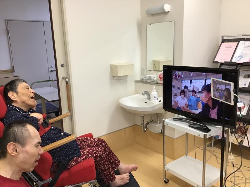 <テレビ電話による学習>「はい,ボールをどうぞ」