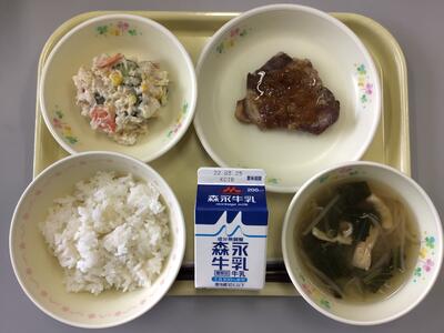 ごはん,牛乳,豚肉の生姜焼き,ポテトリヨネーズ,白菜のみそ汁,ヨーグルト