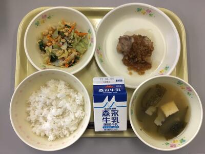ごはん,牛乳,さばのみそ煮,のり酢和え,けんちん汁