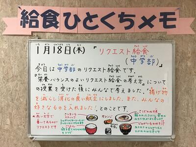 【1/18(木) リクエスト給食(中学部)】