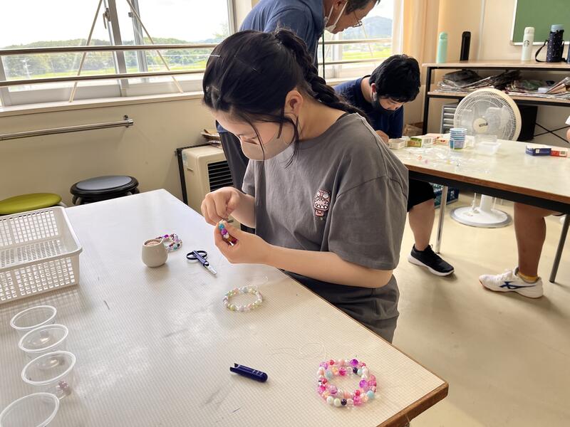 <ブレスレット作り>~仕上げ~針を使って端の処理をしています