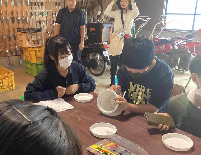7月18日(木)にひまわり教室高等部の1、2年生と亘理高校の交流会を行いました。今年は枝豆の収穫とひまわりの鉢上げを行いました。亘理高校の生徒の皆さんに一つ一つ丁寧に教えていただきました。