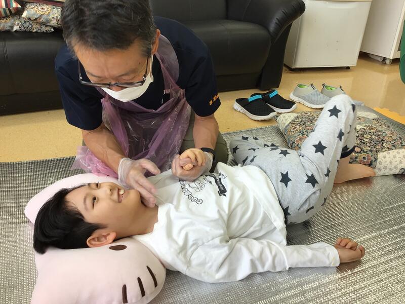 ようこそあすなろ小学部へ!顔を拭いてもらってさっぱり~