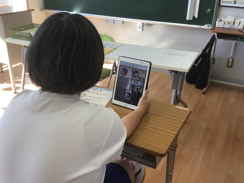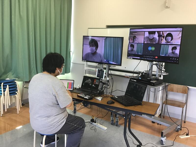 教師(配信者)が離れた教室にいる生徒とオンラインで授業をしました。