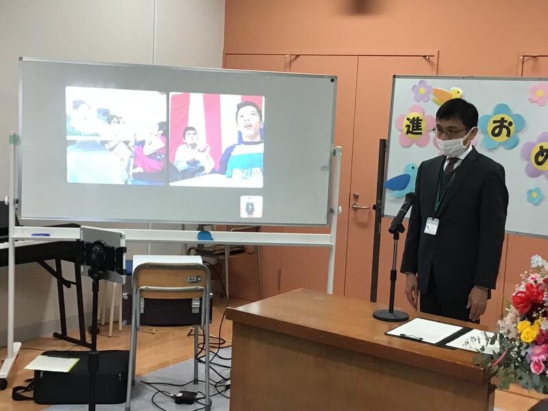あすなろ教室の卒業生は同日の午後に宮城病院とオンライン中継し,ご家族が見守る中,呼名され証書を笑顔で受け取る様子が見られました。