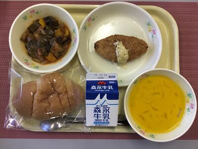 バターロールパン,牛乳,白身魚フライ(タルタルソース),ラタトゥイユ,パンプキンポタージュ