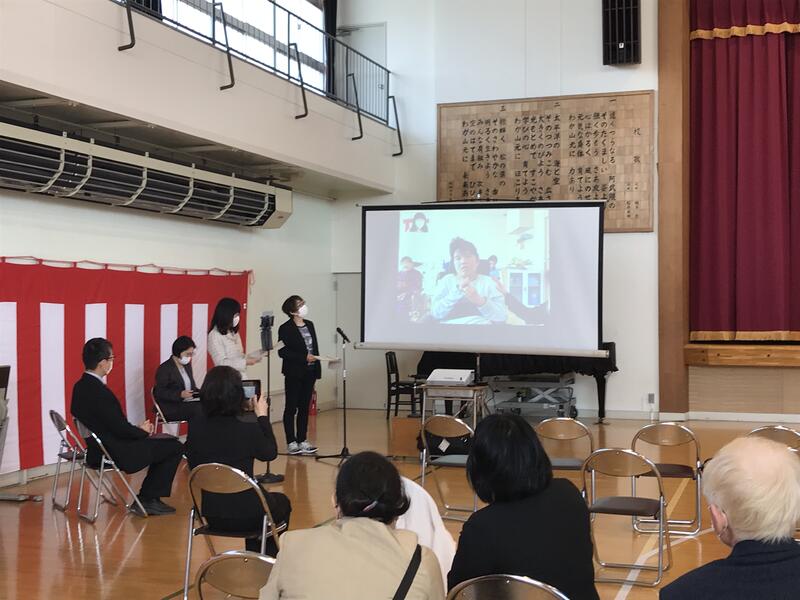 【修了式】学校の体育館と病棟をリモートで繋いでいます。今年頑張ったことを一人一人校長先生から話してもらいました。